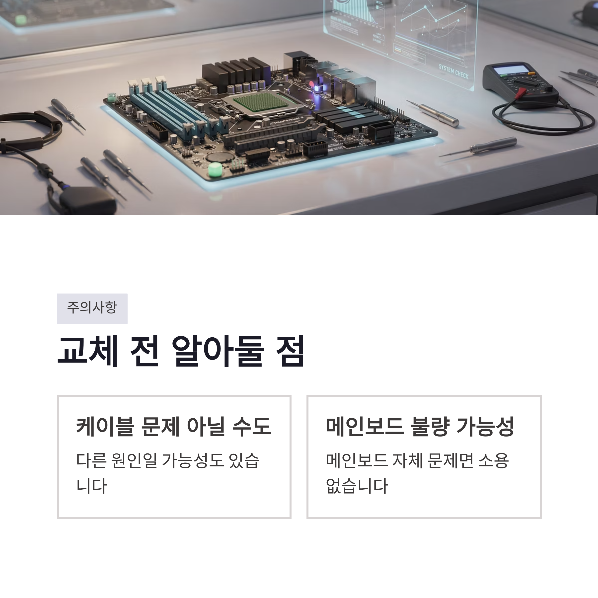 * 케이블 문제 아닐 수도 있음 * 메인보드 불량이면 소용 없음
