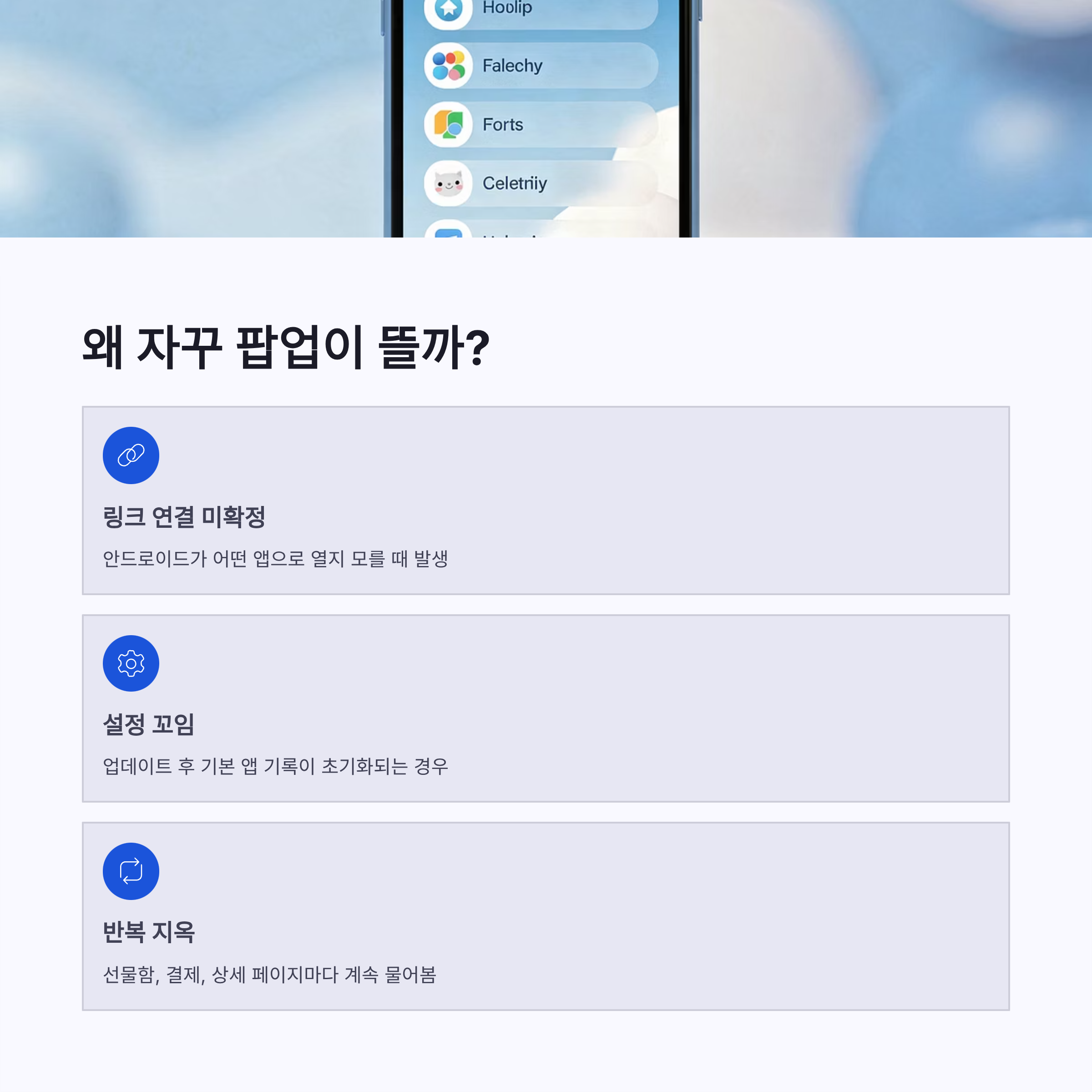 2025년 이후 안드로이드는 보안 때문에 링크 연결 권한을 더 빡세게 관리하더라구요. 그래서 카카오톡 선물하기 연결 프로그램 팝업 문제가 더 자주 생긴 느낌? 장점은 앱 충돌이 줄었다는 거고, 단점은 사용자가 직접 설정 안 하면 계속 물어본다는 점… 귀찮쥬 ㅎㅎ 특히 갤럭시 One UI 6 이상에서는 앱 업데이트 후 설정이 초기화되는 경우도 있어서, 팝업이 다시 뜨면 이 글 방법으로 한 번 더 체크해주는 게 좋아요.