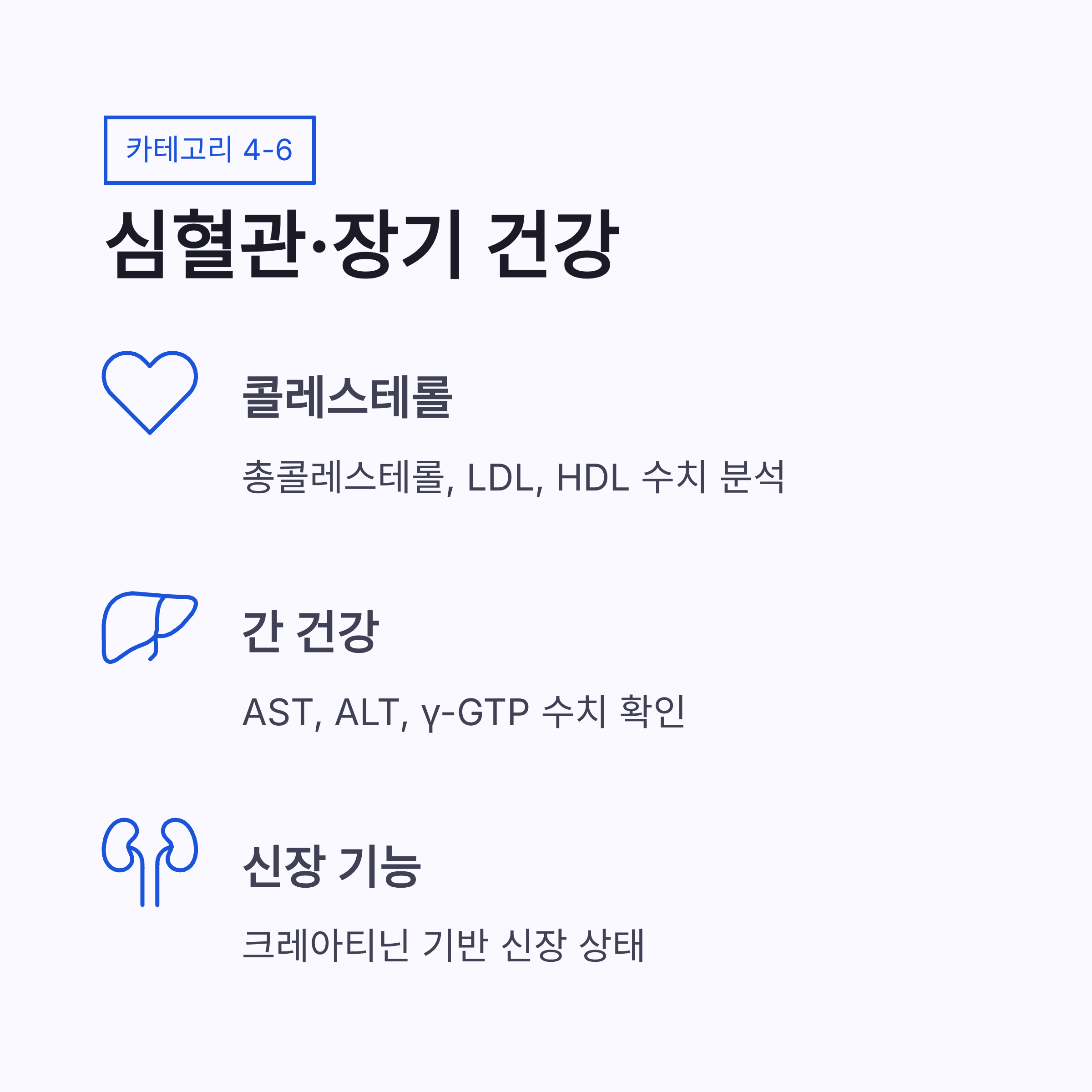 | 콜레스테롤 | 총콜레스테롤·LDL·HDL |