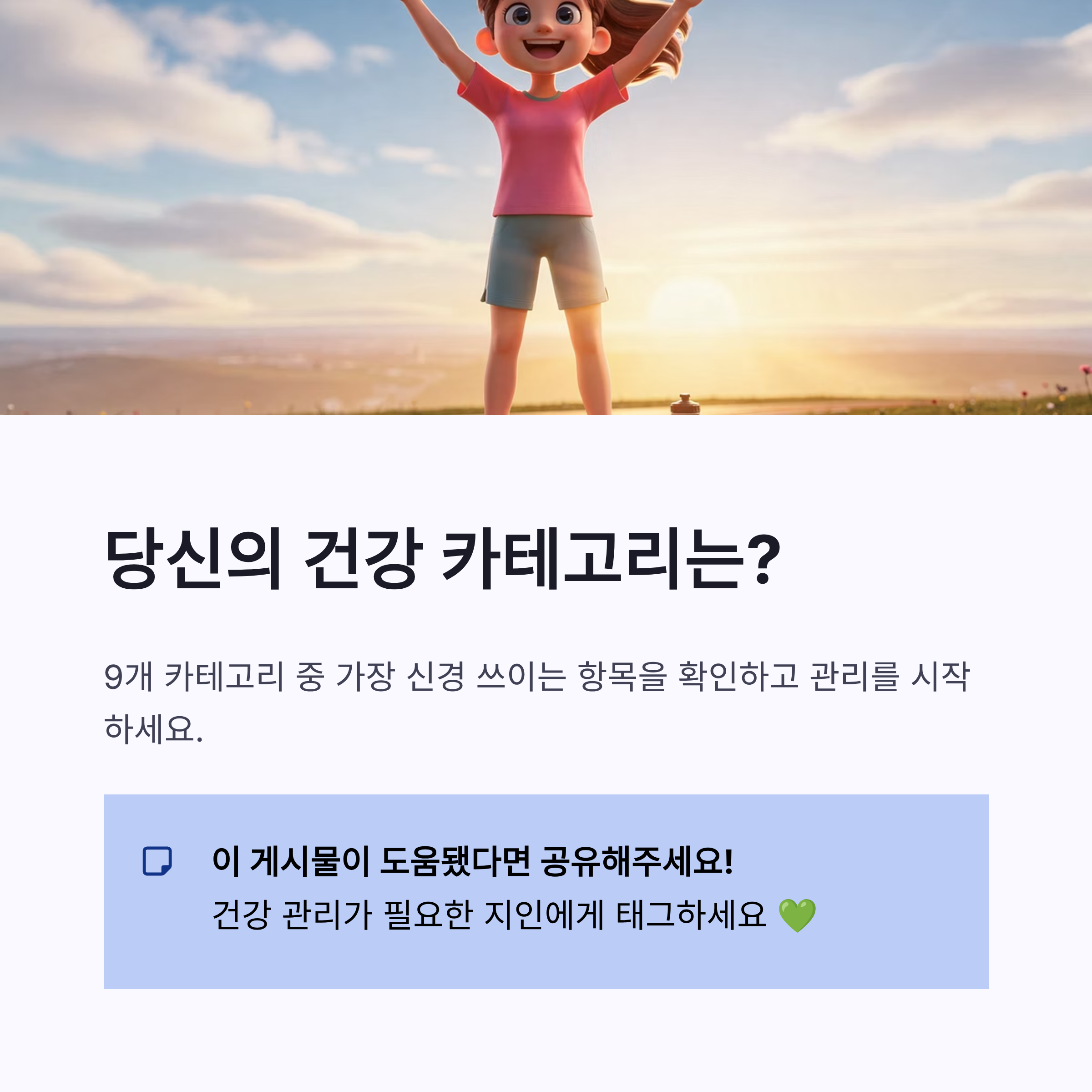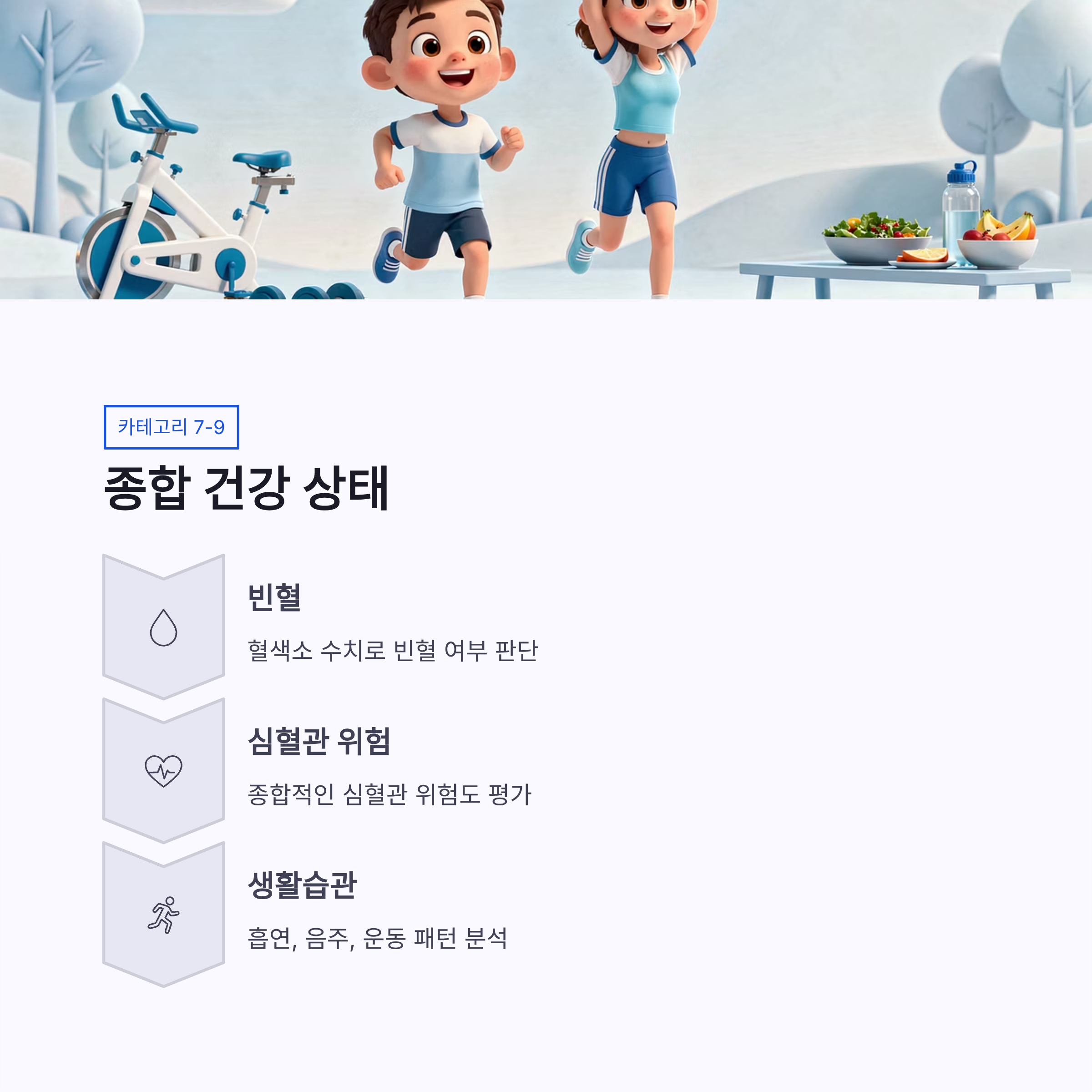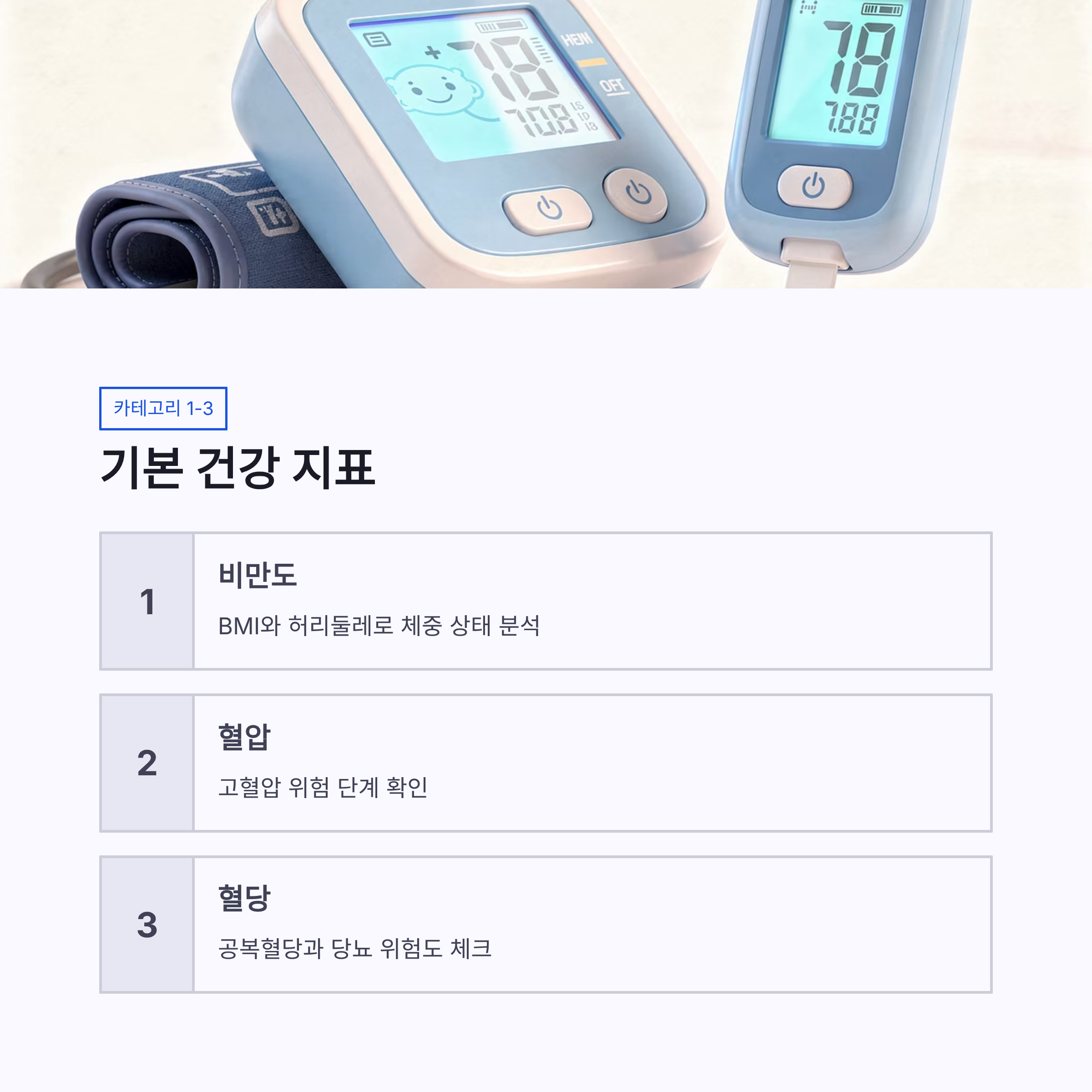 제가 직접 확인한 카카오페이 내 건강 분석의 9개 카테고리는 아래처럼 정리됩니다. 숫자로 보니까 이해가 훨씬 쉬웠어요.