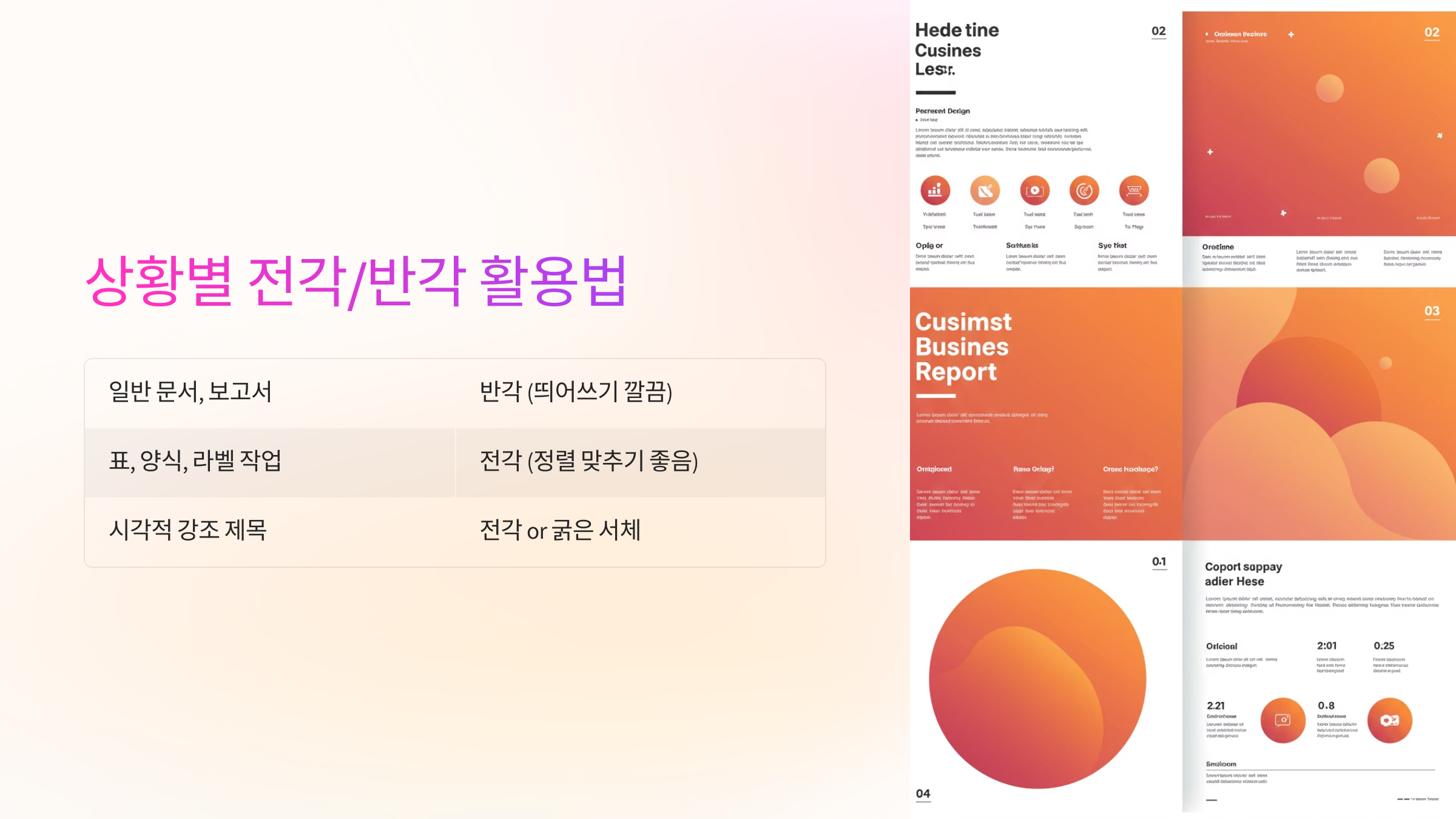 | 시각적으로 강조하고 싶은 제목 | 전각 or 굵은 서체 사용 |