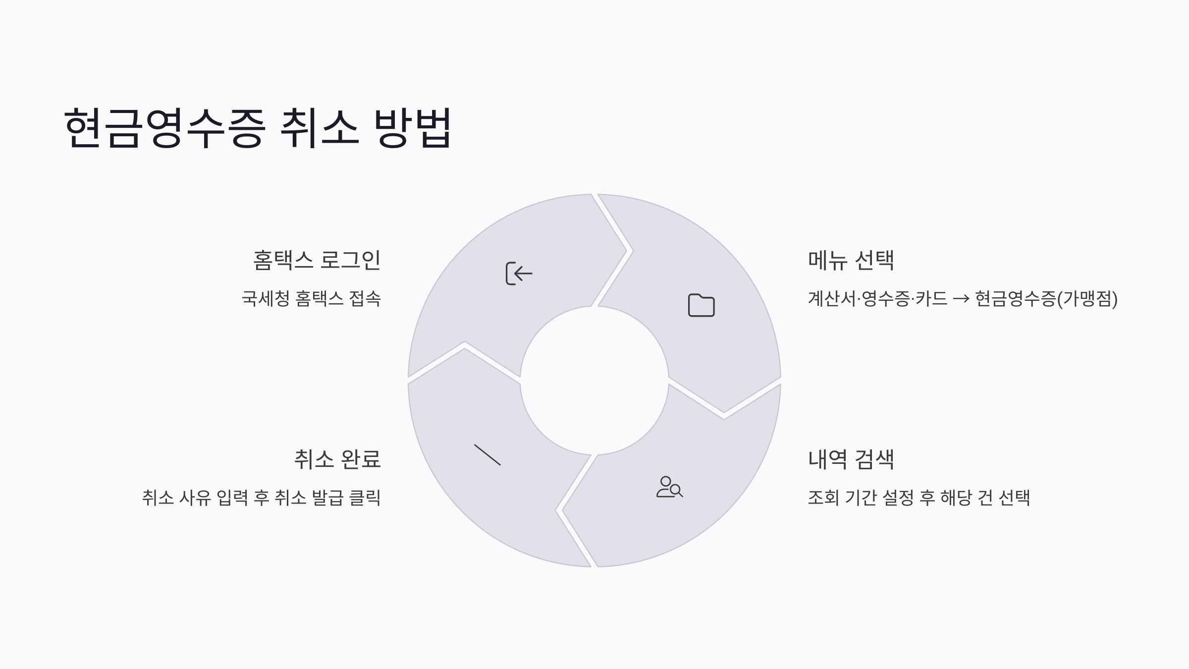 | 취소 방법 | 홈택스 > 취소발급 / ARS 126 / 가맹점 단말기 |