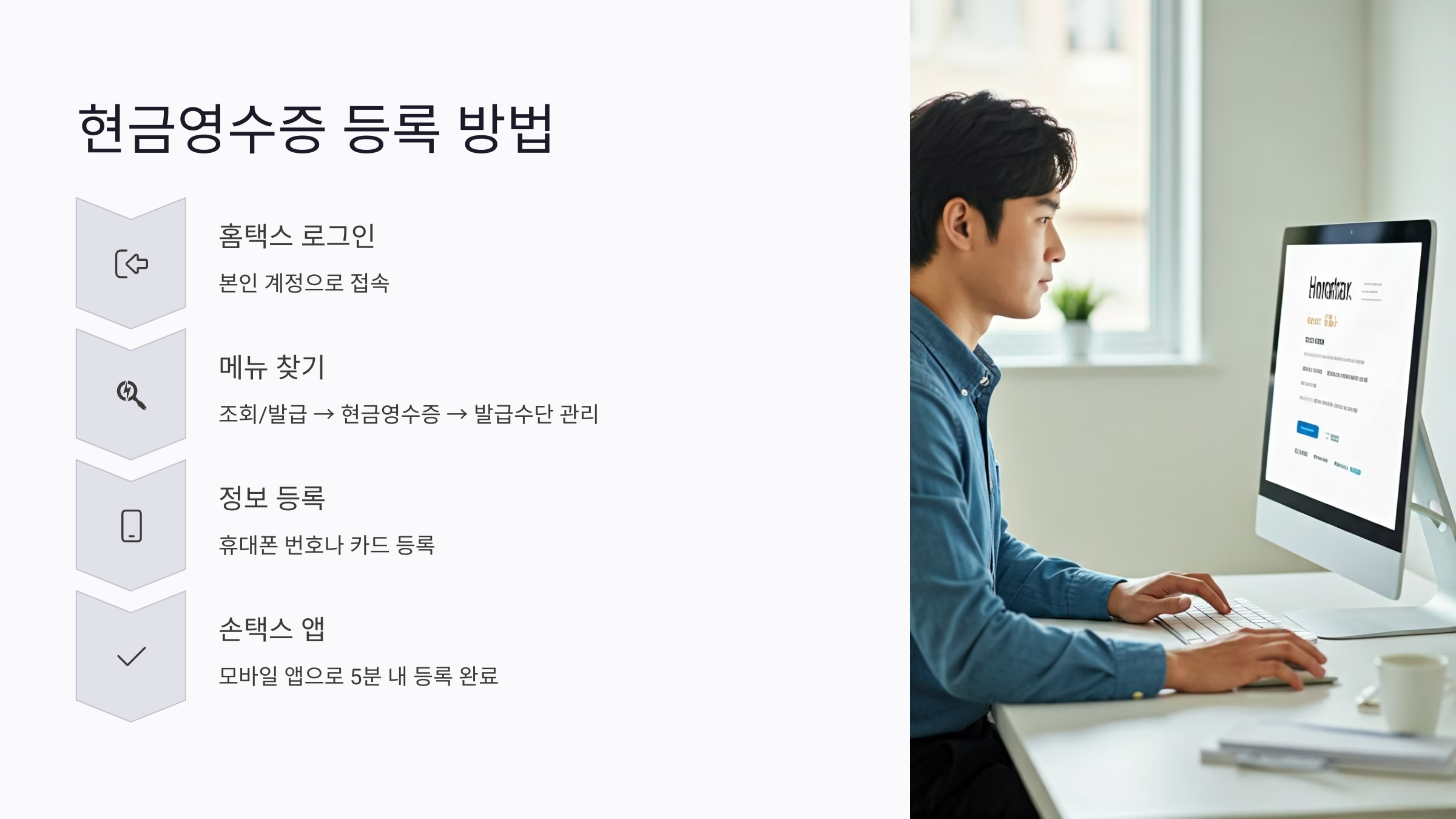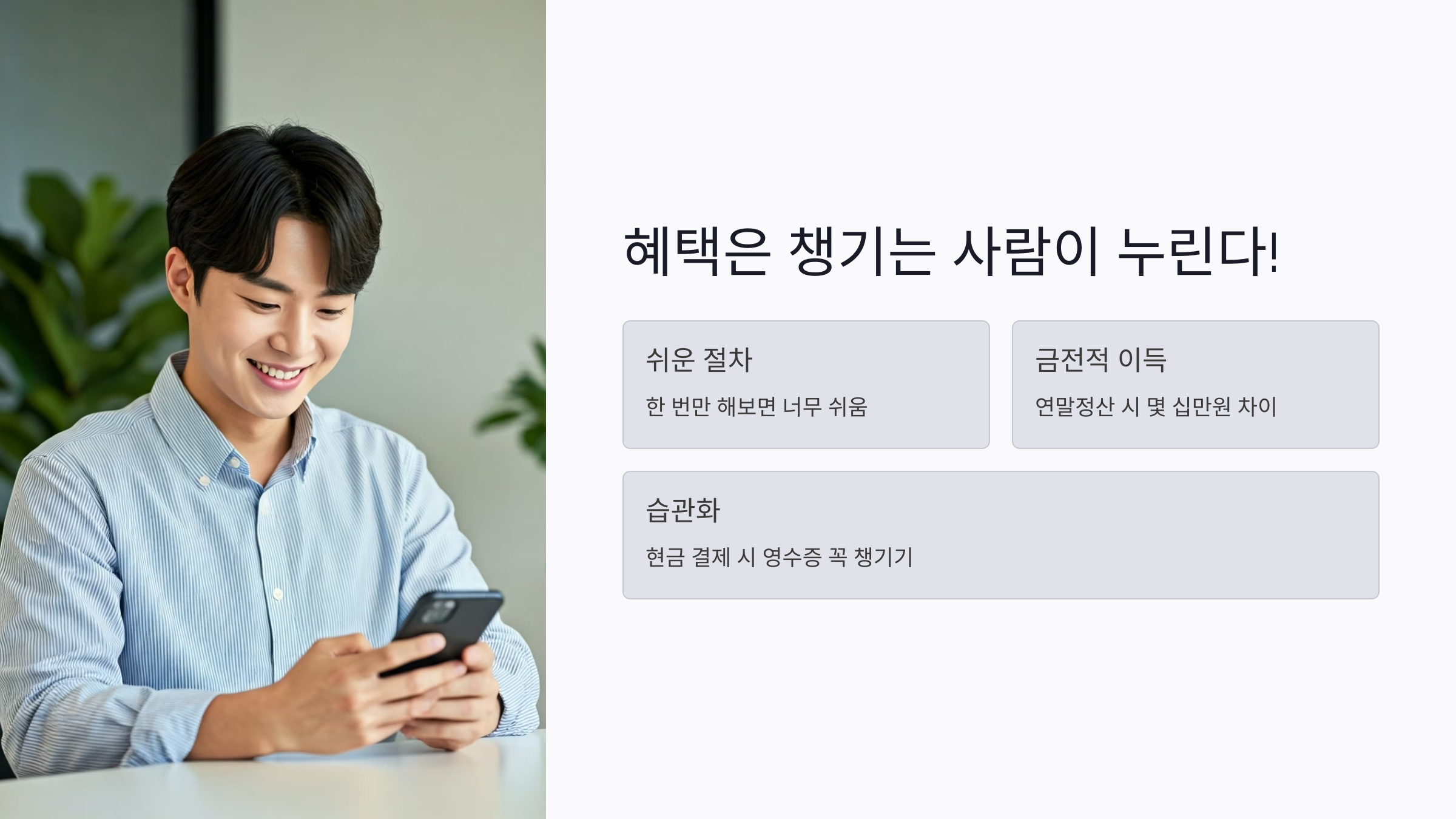 | 등록 방법 | 홈택스 또는 손택스에서 휴대폰, 카드 등록 |