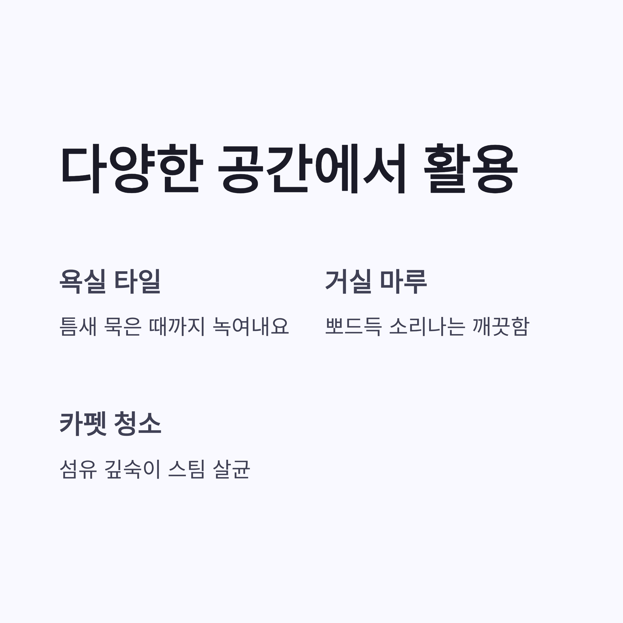 청소하고 나면 바닥이 번들거리는데도 묘하게 찝찝한 느낌, 다들 아시쥬? 저도 물걸레질을 하루 걸러 한 번씩 했는데도 아이가 바닥에 엎드려 놀면 괜히 마음이 쓰이더라구요. 그래서 찾게 된 게 홈앤아트 퓨어 스팀청소기 AMS-200이었어요. 고온 스팀으로 세균을 잡아준다는 말에 반신반의했는데, 실제로 써보니 생각보다 훨씬 시원했구요. 100℃ 이상 고온 스팀이 순간 분사되니까 화학세제 없이도 바닥이 뽀드득해요. 냄새도 안 남고요! 특히 반려동물 키우는 집이나 아이 있는 집은 이런 살균 방식이 진짜 필요하겠다 싶었어요 ㅎㅎ