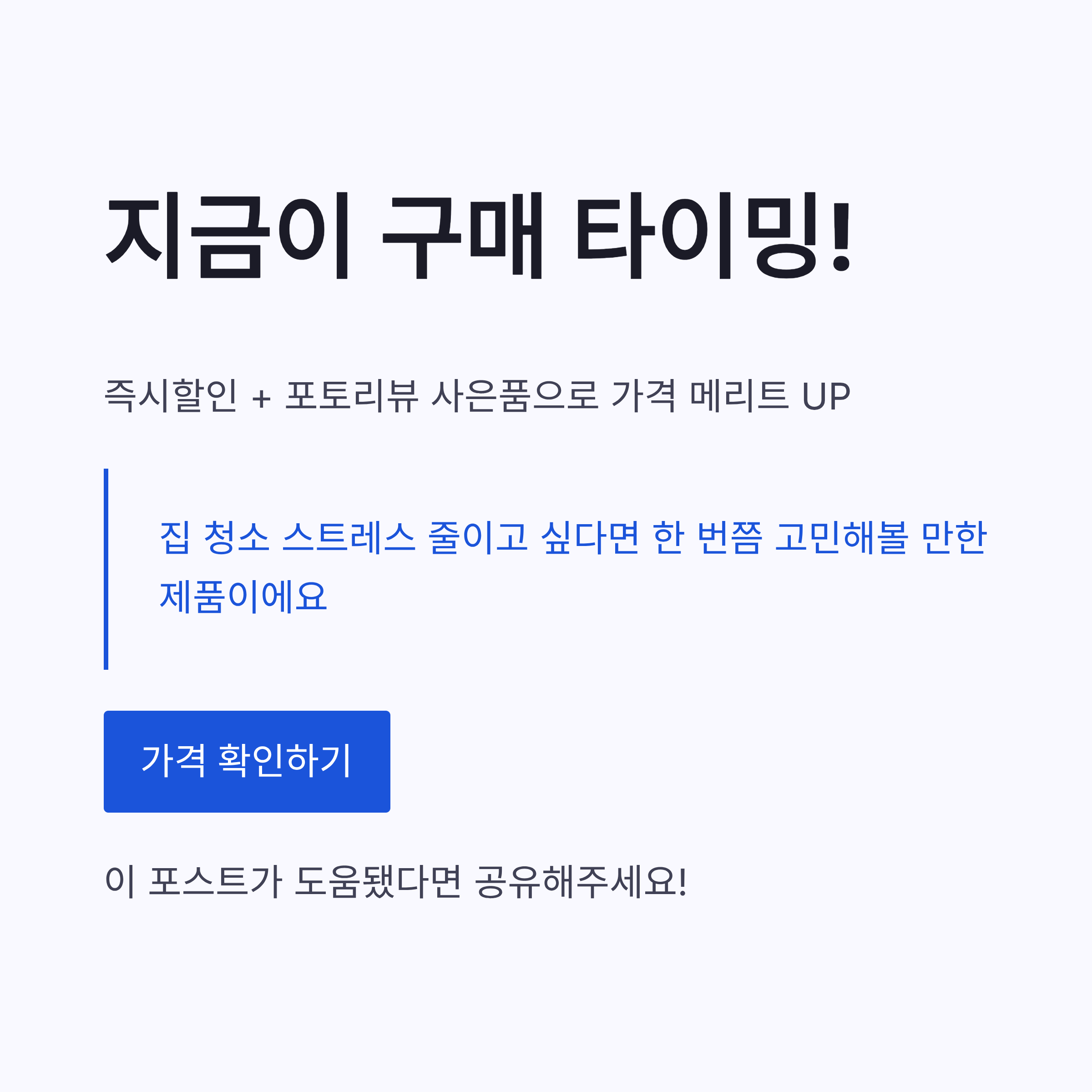 정리해보면 홈앤아트 퓨어 스팀청소기 AMS-200은 집에서 간편하게 살균 청소하고 싶은 분들께 딱이에요. 물걸레질로는 부족하다고 느끼셨다면 한 번쯤 써볼 만하더라구요. 요즘은 즉시할인에 포토리뷰 사은품까지 붙어서 가격 메리트도 꽤 커졌어요. 저도 그 타이밍에 산 거라 괜히 더 만족스럽구요 ㅎㅎ 집 청소 스트레스 줄이고 싶은 분들이라면 한 번쯤 고민해봐도 좋겠쥬?