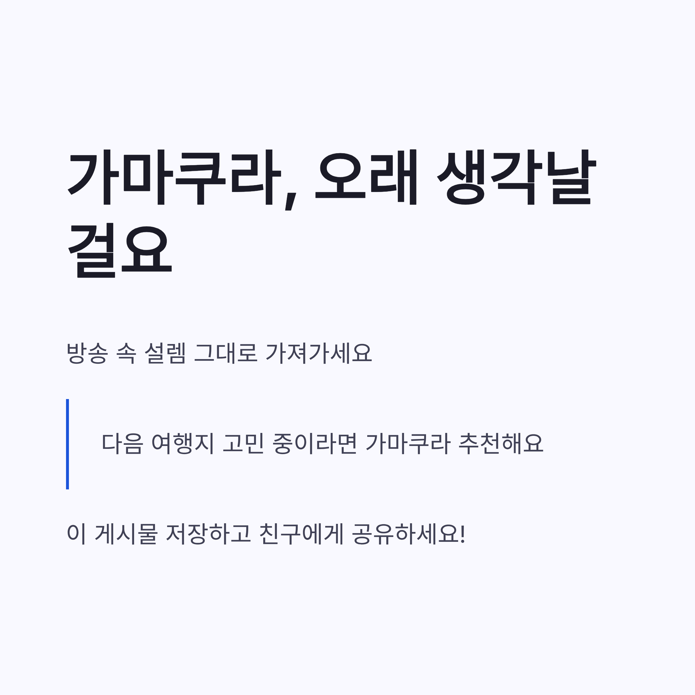 정리해보면 환승연애4 가마쿠라 여행은 감성용 화면이 아니라, 실제로 다녀오기 딱 좋은 코스였어요. 버스투어 활용하면 안전하고 효율적이고, 혼자여도 어색하지 않았구요. 방송에서 느낀 설렘을 그대로 가져가고 싶다면, 일정 짧게 욕심내지 말고 핵심만 보는 걸 추천해요. 다음 여행지 고민 중이라면, 가마쿠라… 은근히 오래 생각날걸요 ㅎㅎ