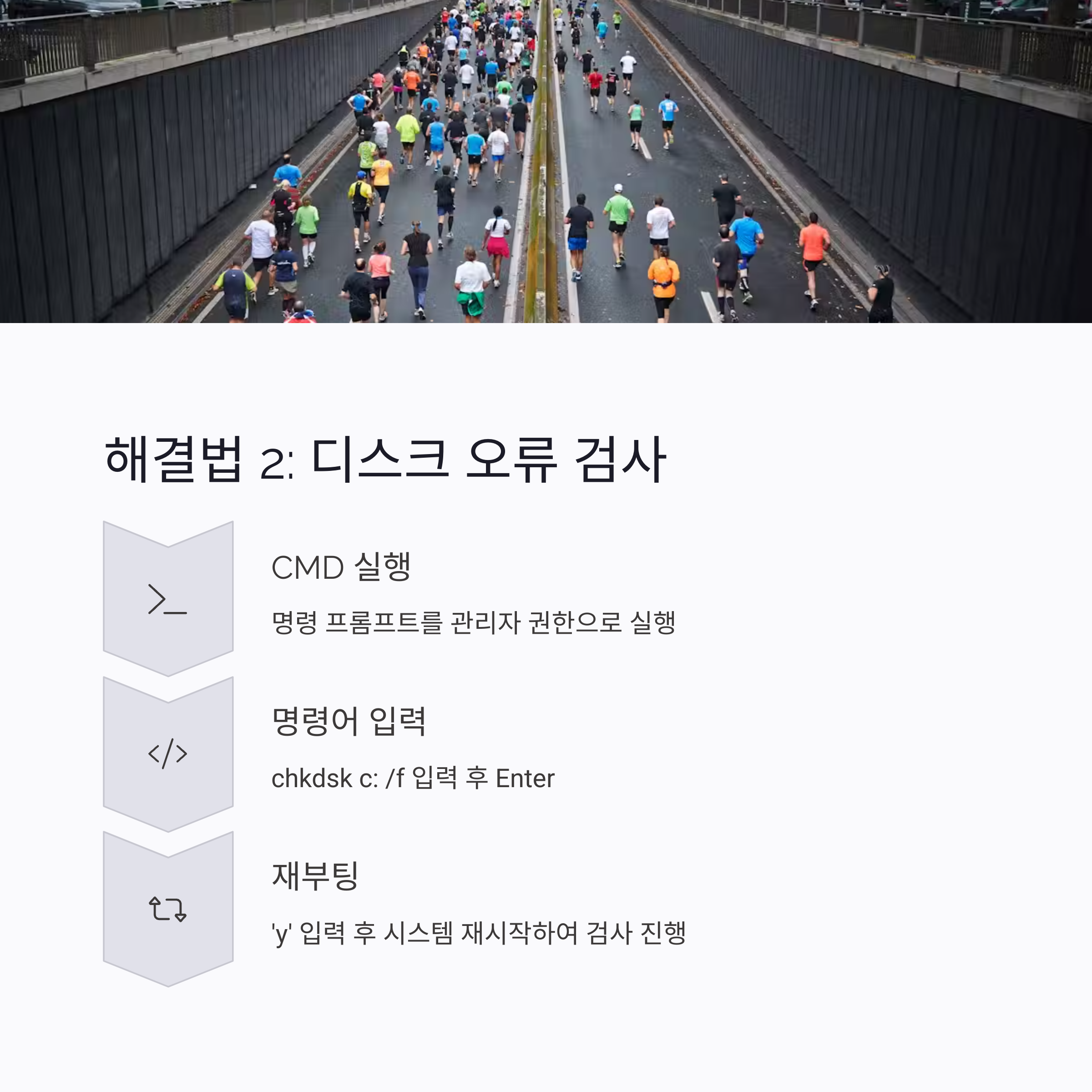 ✅ 방법 2: 디스크 오류 검사 (CMD 명령어)