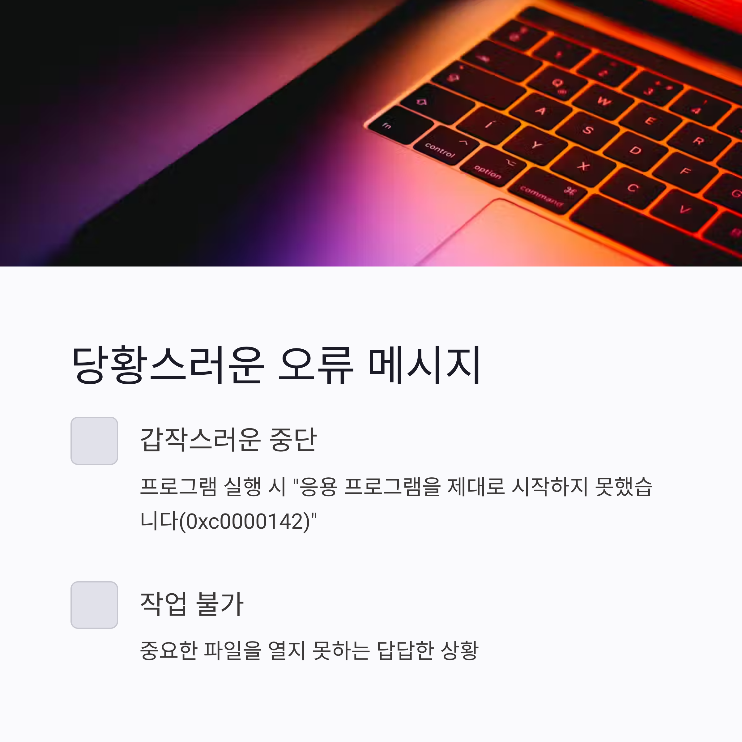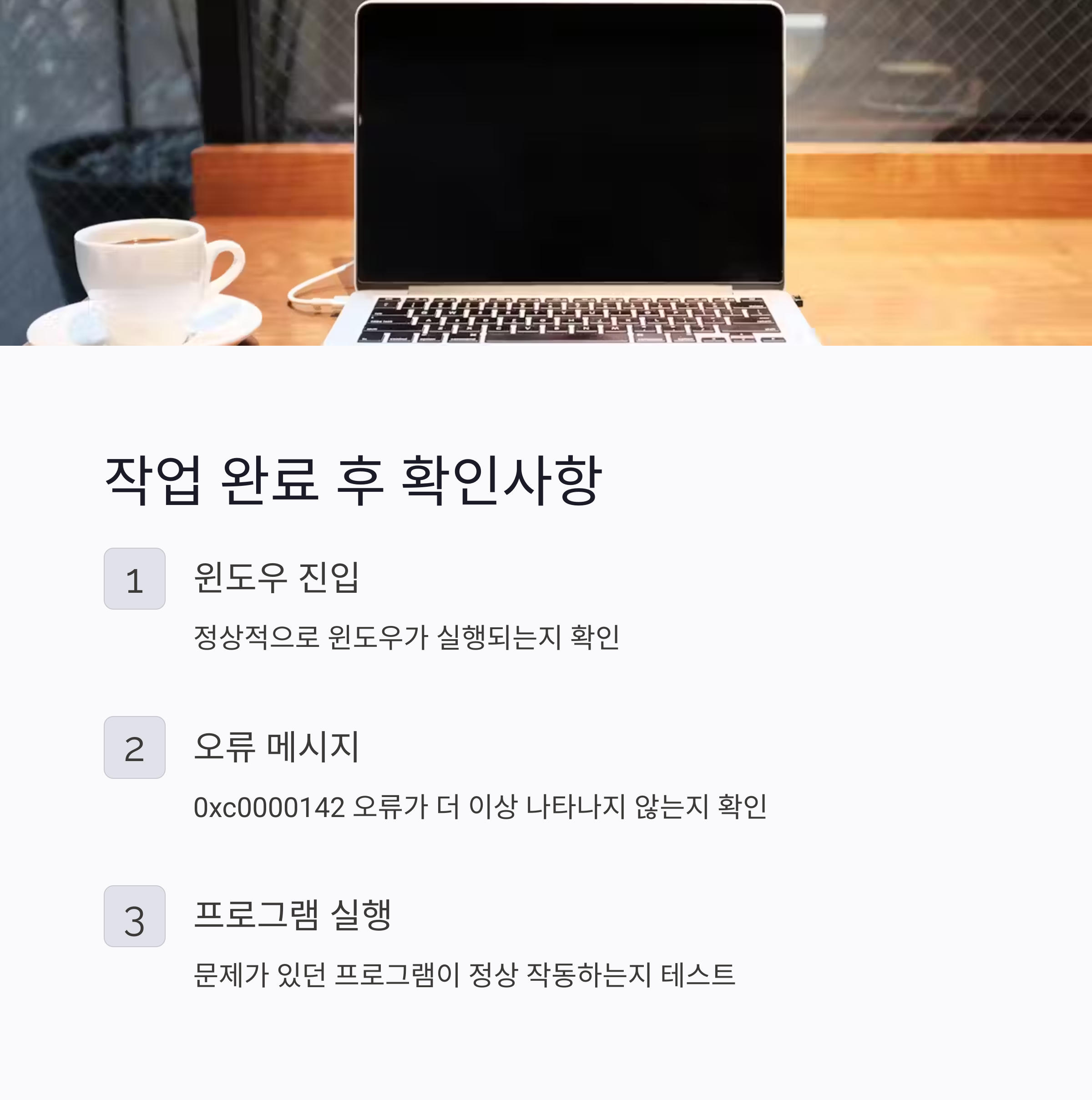 이 두 가지만 기억하셔도 대부분의 0xc0000142 오류는 해결되실 거예요.