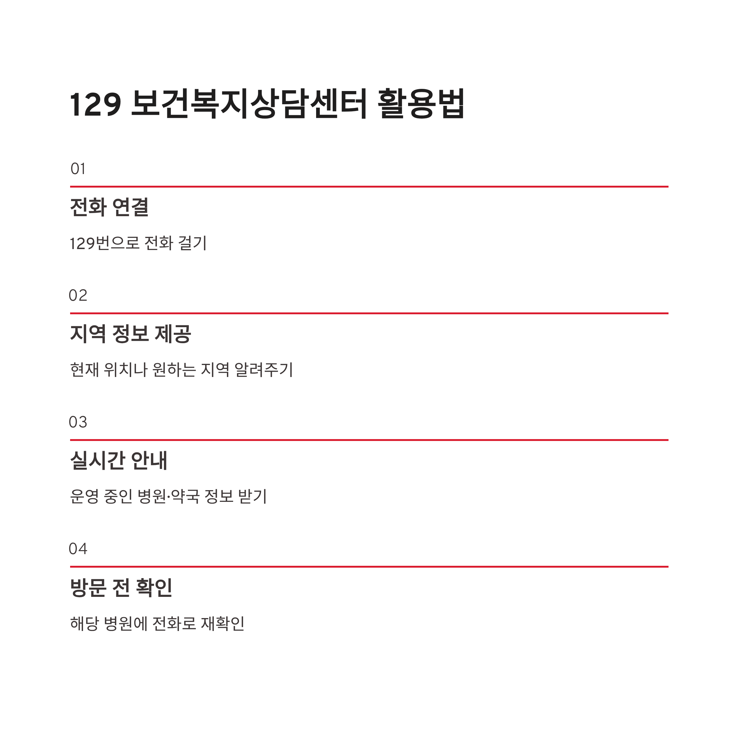 | 전화문의 | 129 보건복지상담센터 | 실시간 안내 가능 |