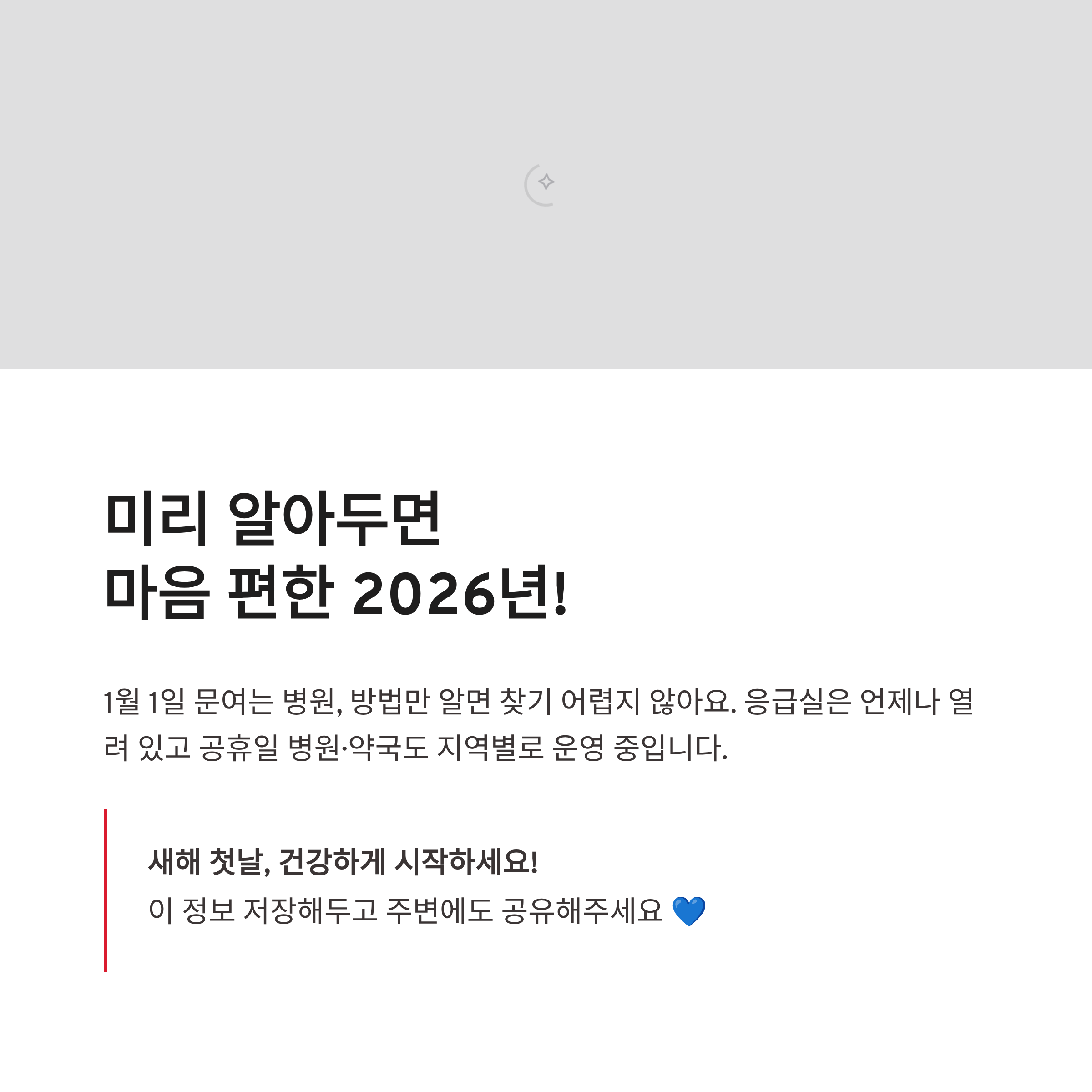 #1월1일문여는병원 #2026년신정병원 #공휴일병원 #신정약국 #휴일진료 #당직병원 #응급실24시간 #공휴일약국 #병원찾기 #약국찾기 #신정공휴일 #연휴병원 #보건복지부병원 #휴일병원조회 #2026공휴일