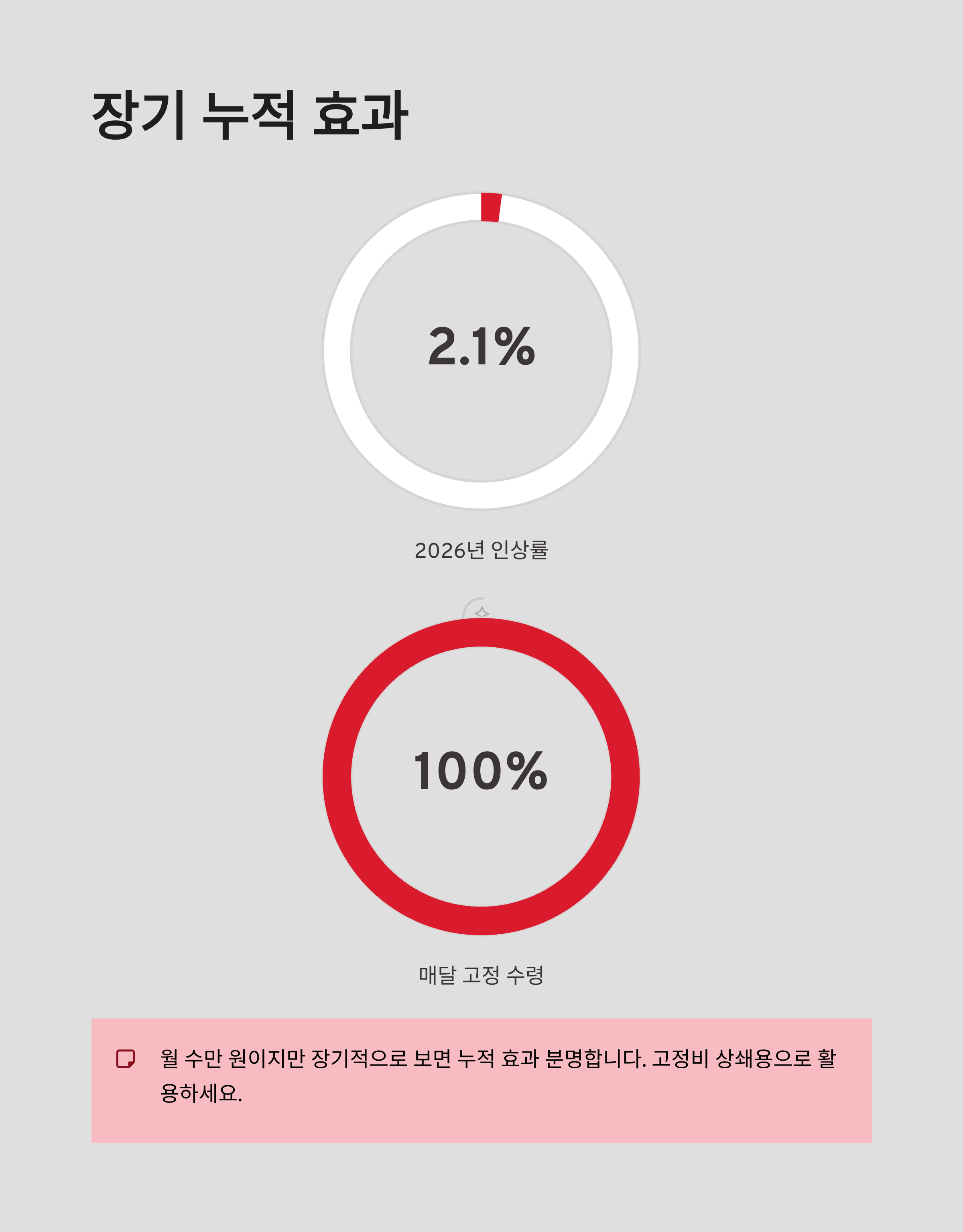 그럼 제일 궁금한 부분, 2026년 사학연금 인상률 2.1%가 실제 수령액에 얼마나 영향을 주는지 볼게요. 숫자로 보니까 체감이 좀 되더라구요.