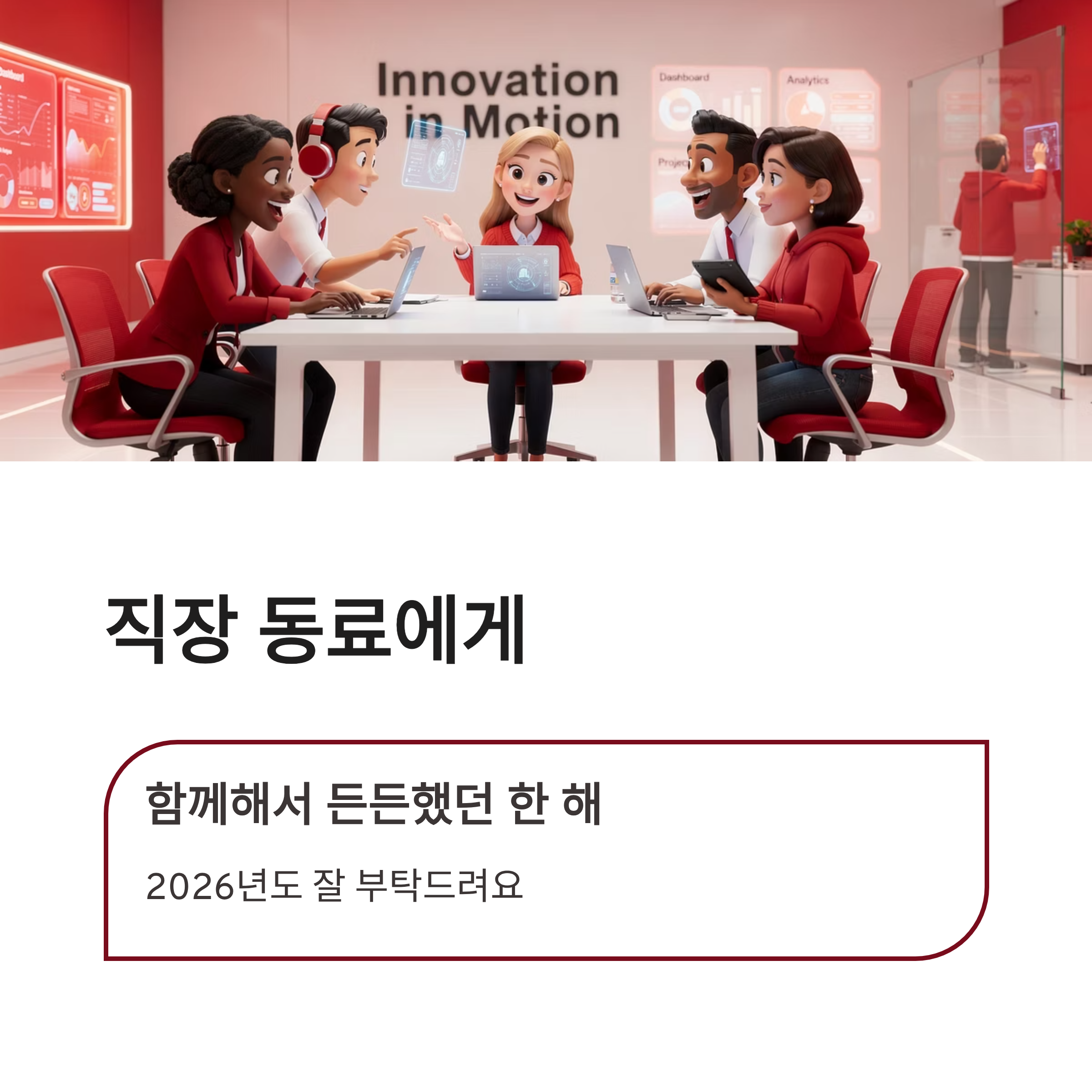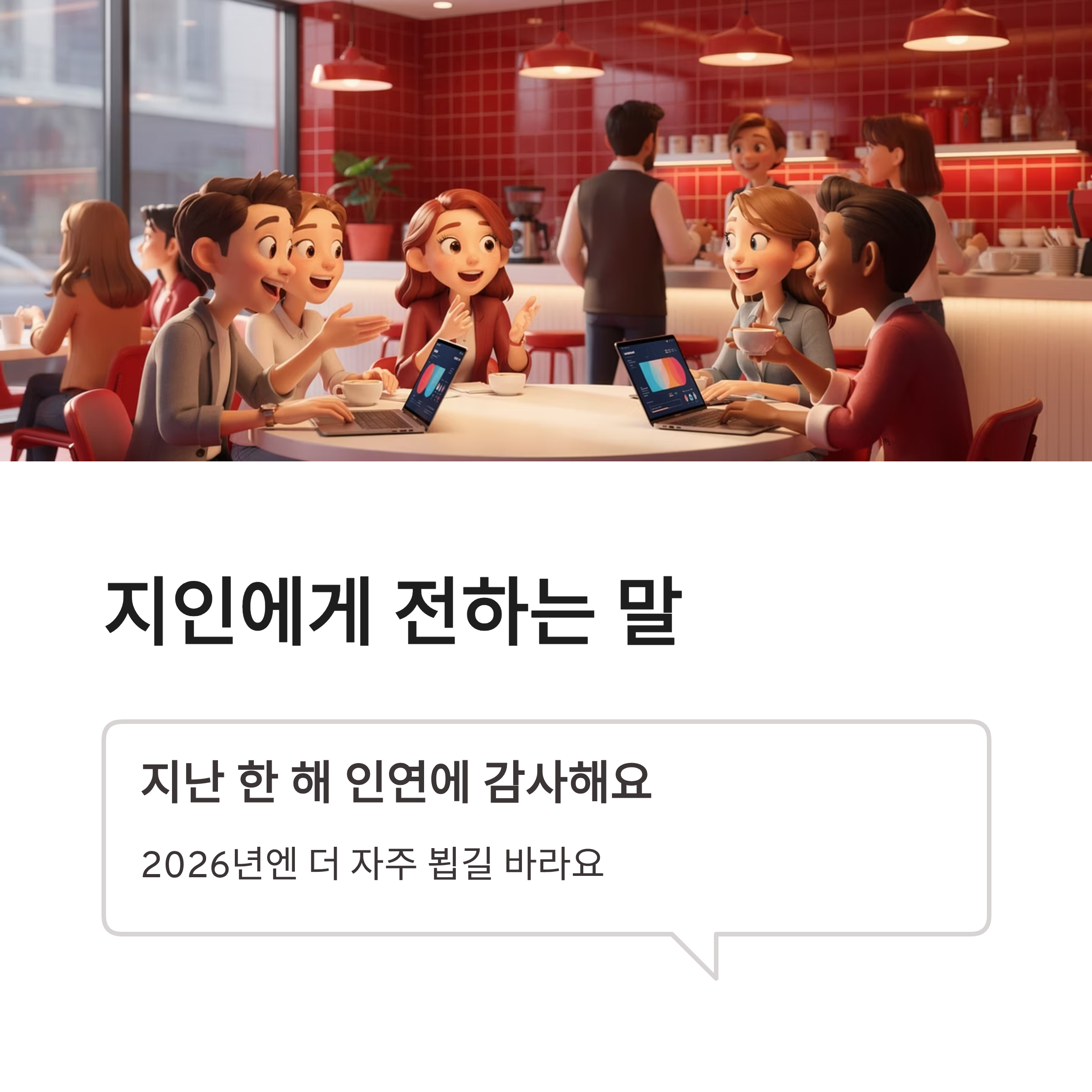 | 직장동료 | 함께해서 든든했던 한 해였습니다. 2026년도 잘 부탁드려요 |