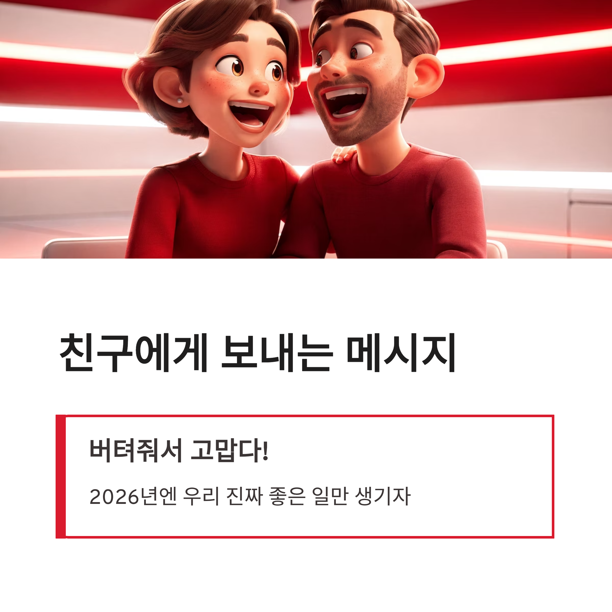 | 친구 | 버텨줘서 고맙다! 2026년엔 우리 진짜 좋은 일만 생기자 |