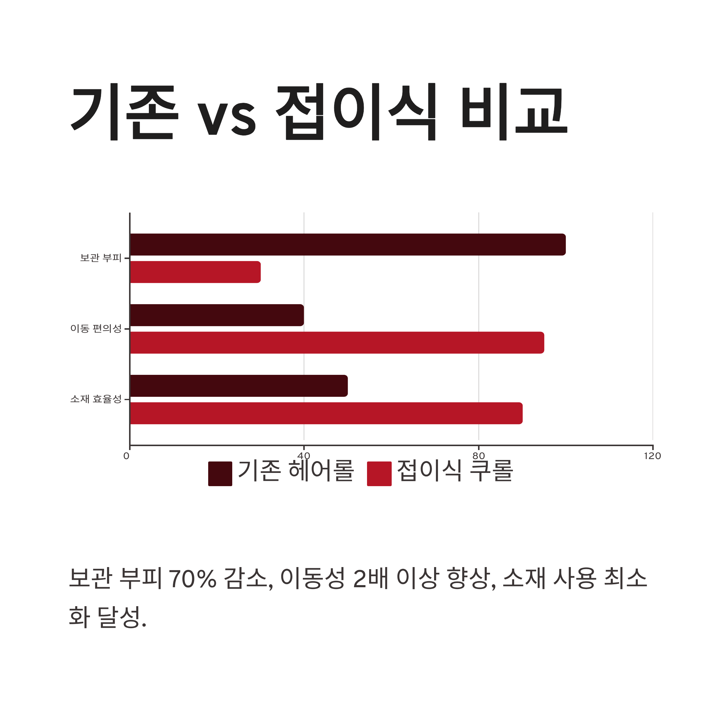 | 보관 | 부피 큼 | 납작 접힘 |