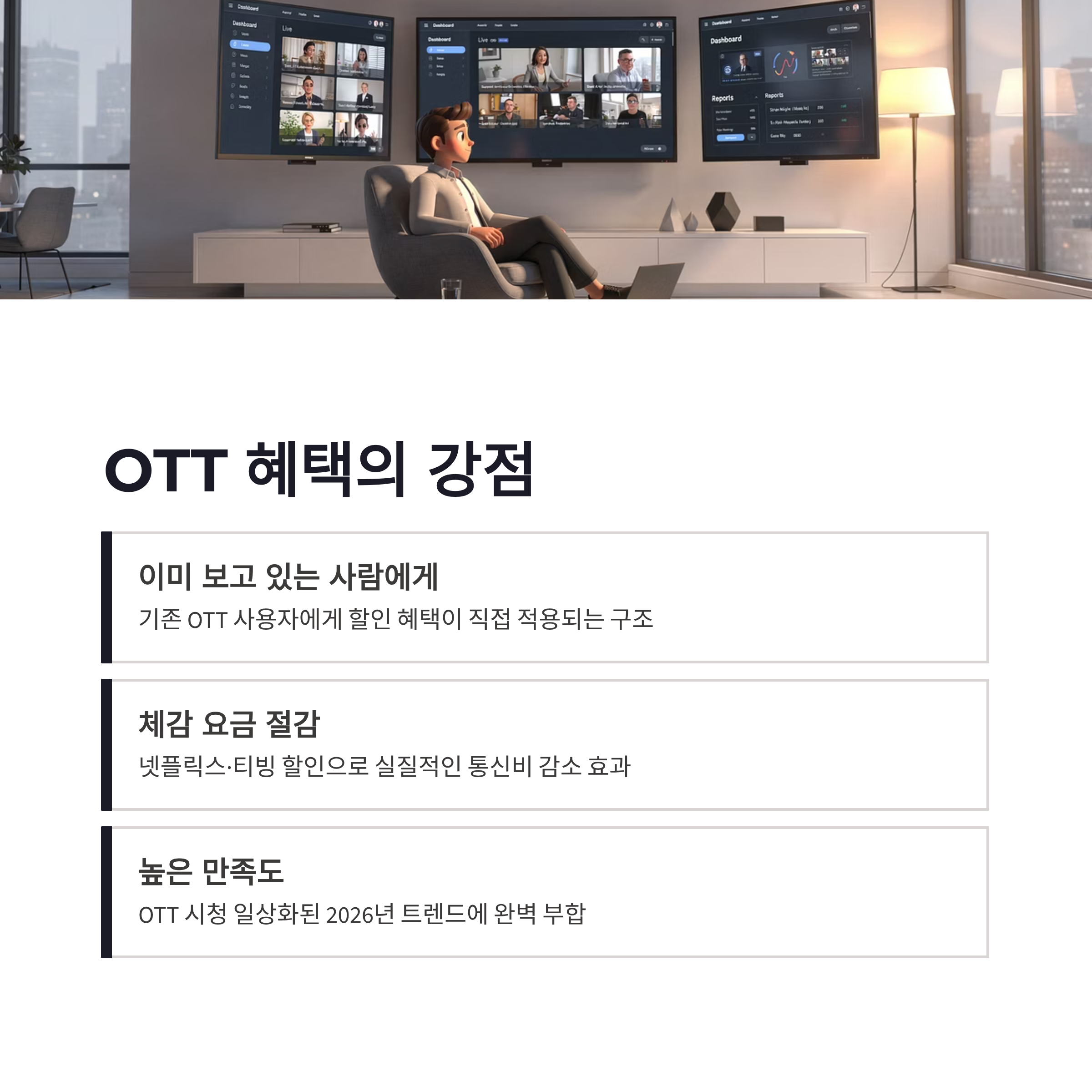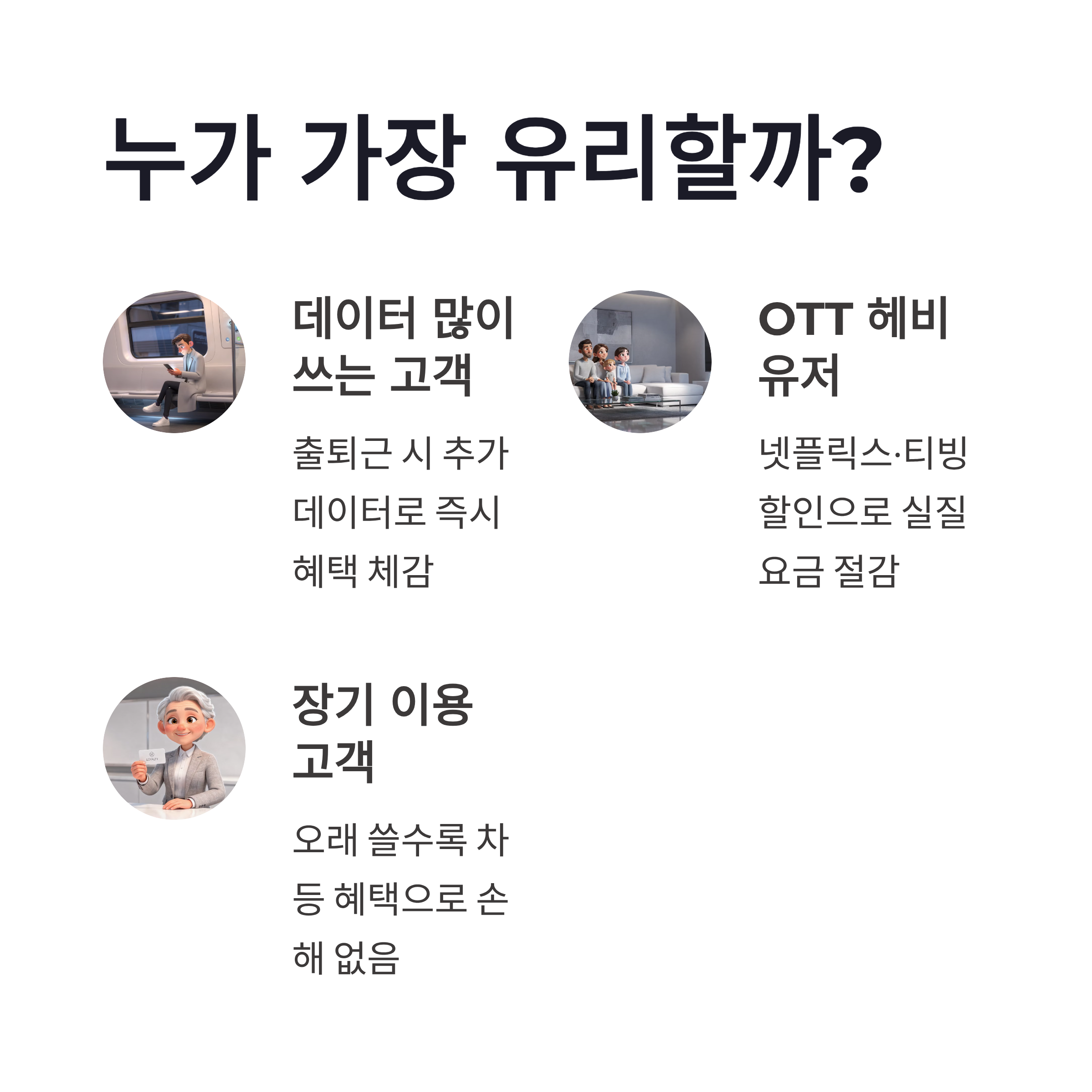 | OTT 연계 | OTT 이용권 할인·무료 | 넷플릭스·티빙 사용자 만족도 높음 |