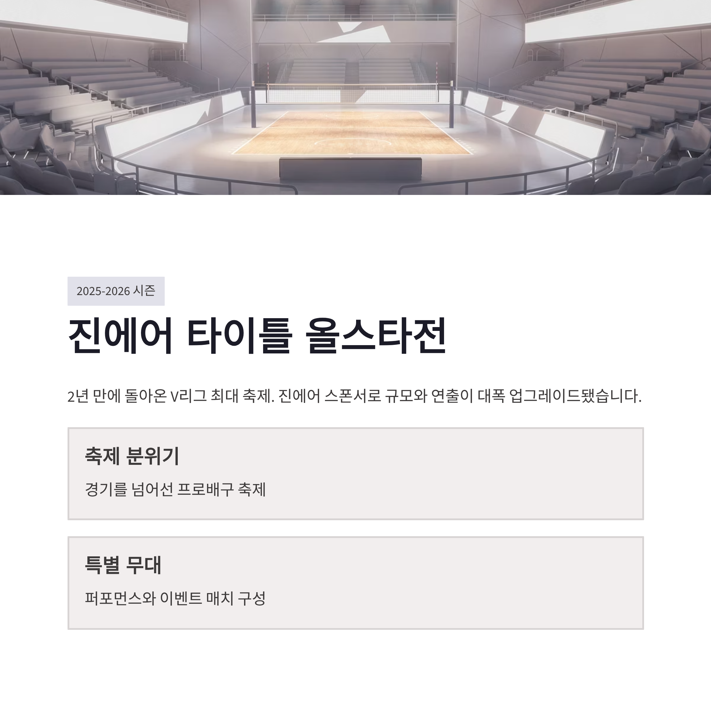 드디어 v리그 올스타전 예매 시즌이 왔구요. 진짜 기다렸던 분들 많으셨을 듯요. 2025-2026 V-리그 올스타전은 무려 2년 만에 열리는 행사라 분위기부터 다르더라구요. 이번엔 진에어가 타이틀 스폰서로 참여하면서 무대 연출이나 이벤트 규모가 확 커졌다는 얘기가 많았어요. 경기라기보단 축제 느낌? 그래서인지 v리그 올스타전 예매 문의도 초반부터 엄청 몰리는 중이었구요. 저도 일정 확인하다가 “아 이건 무조건 가야겠다” 싶었네요 ㅎㅎ v리그 올스타전 예매는 좌석 선택이 빠른 게 관건이라 미리미리 준비하는 게 진짜 중요했어요.