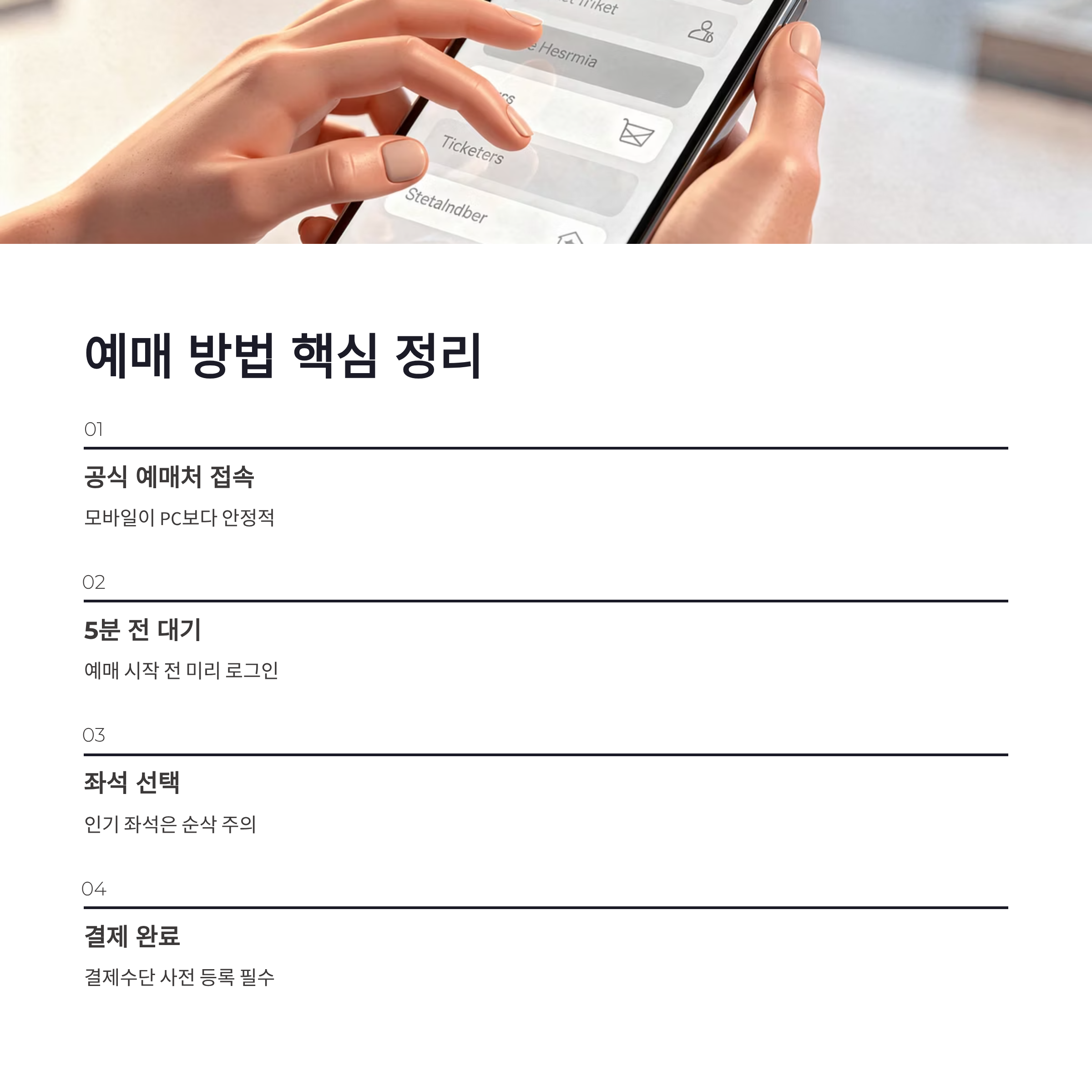 | 예매 팁 | 모바일 로그인 미리, 결제수단 사전 등록 |
