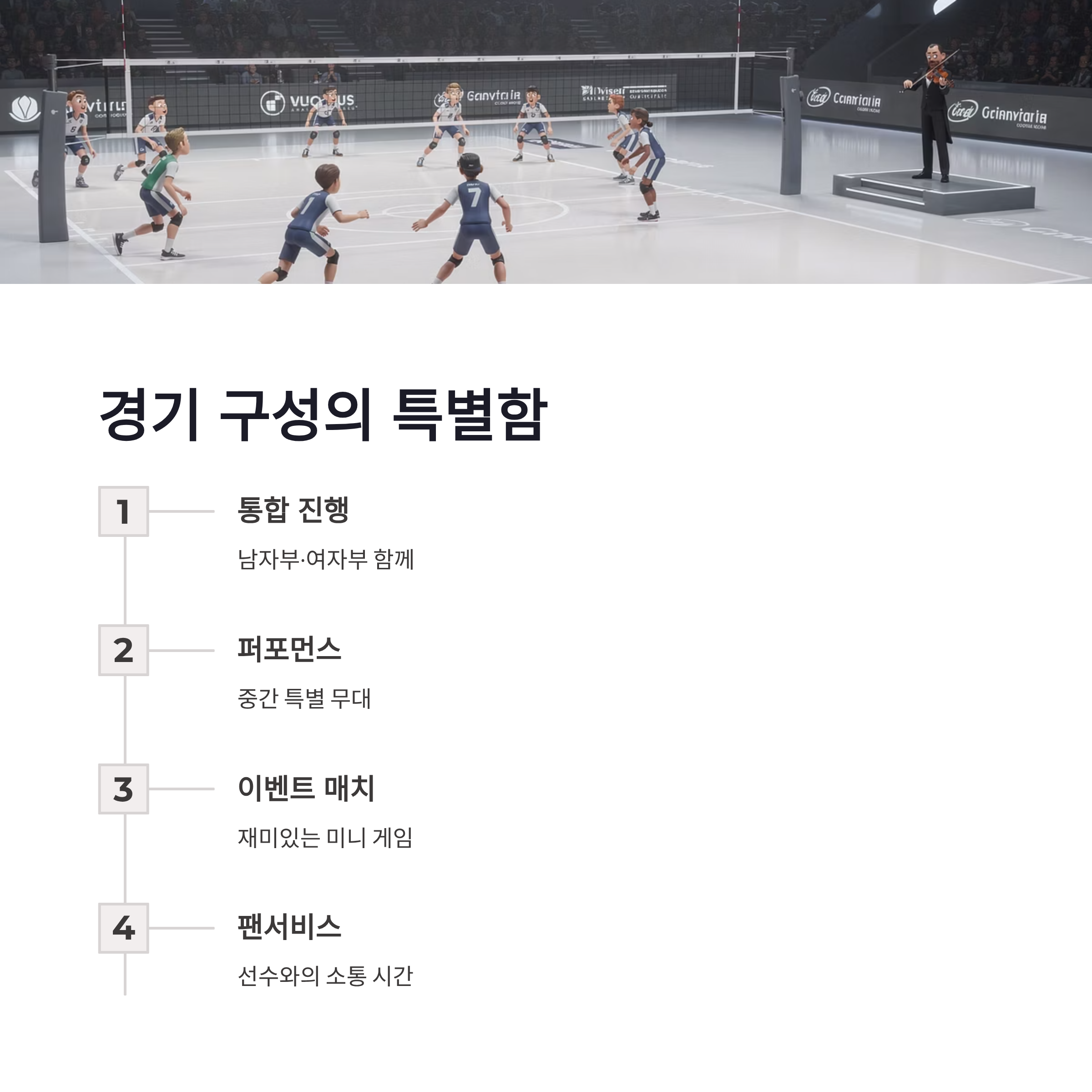 이번 v리그 올스타전 선발 명단은 팬 투표 비중이 높아서인지 화제성 있는 선수들이 대거 포함됐어요. 남자부·여자부 통합 진행이라 흐름도 빠르고, 중간중간 퍼포먼스랑 이벤트 매치가 섞여 있어서 지루할 틈이 없겠더라구요. 장점이라면 팬서비스가 많다는 점! 단점은 진짜 경기만 보고 싶은 분들에겐 살짝 산만할 수도 있다는 거였어요. 그래도 v리그 올스타전 예매할 정도면 이런 분위기까지 즐기는 게 맞는 듯요 ㅋㅋ 요즘 트렌드가 “보는 경기 + 즐기는 현장”라서 딱 맞는 구성 같았어요.